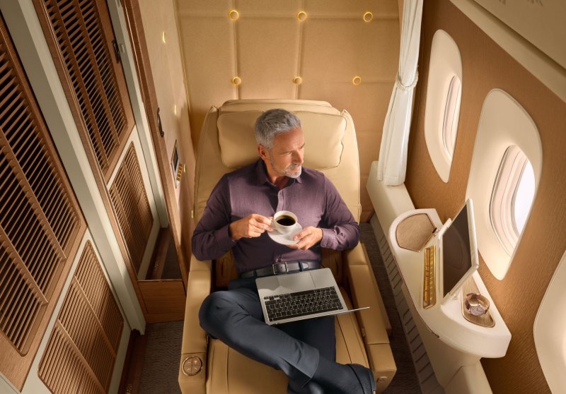 - prostorná a uzavíratelná privátní kabinka “Private Suite” (v Airbusu A380 a Boeingu 777-300ER)
