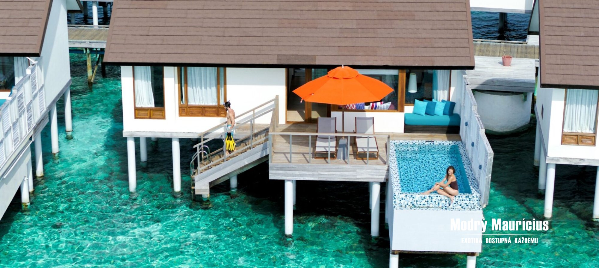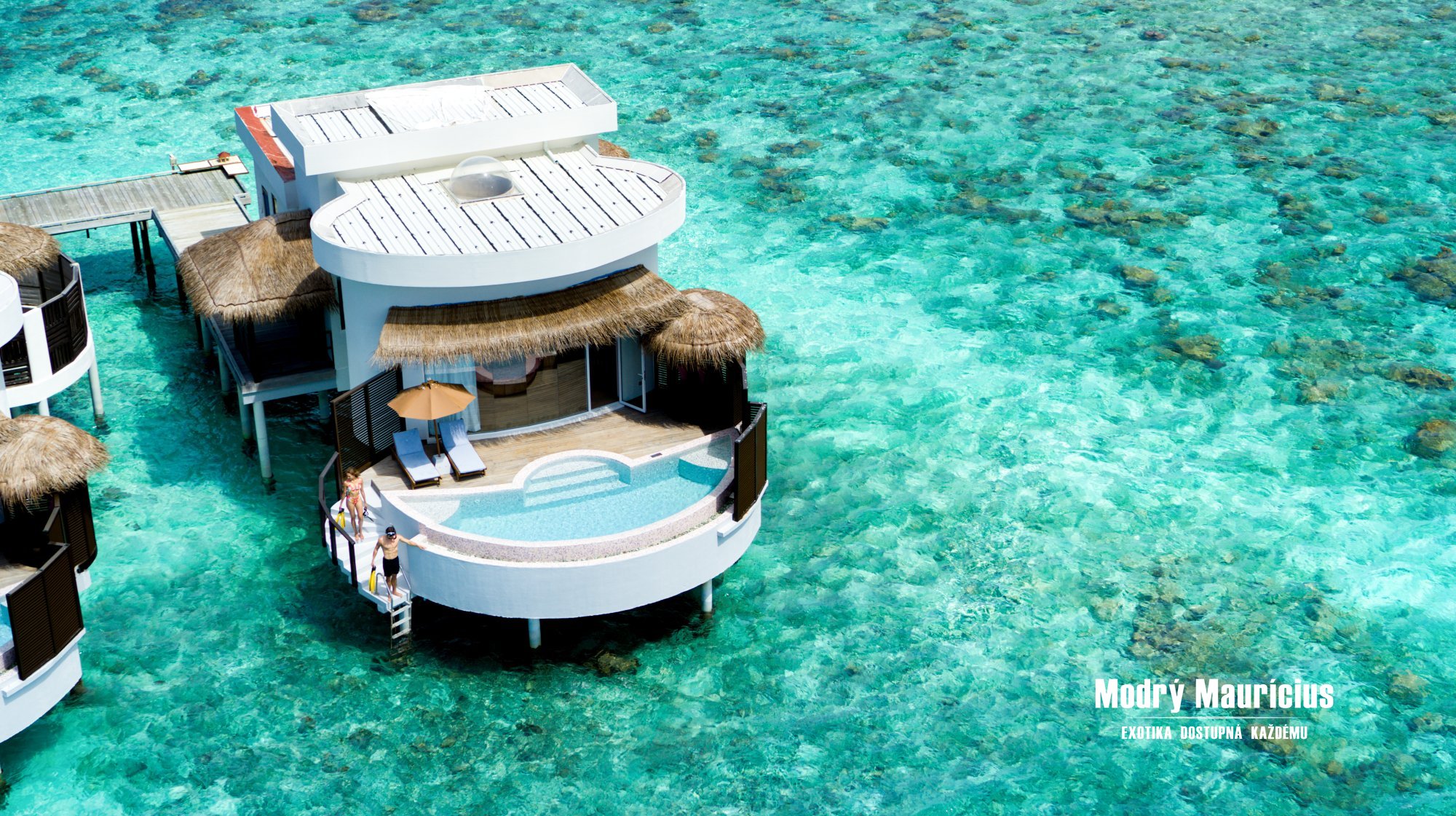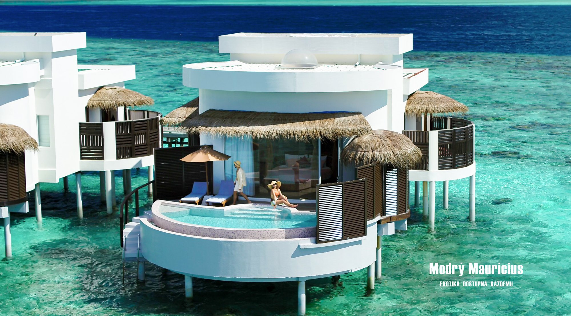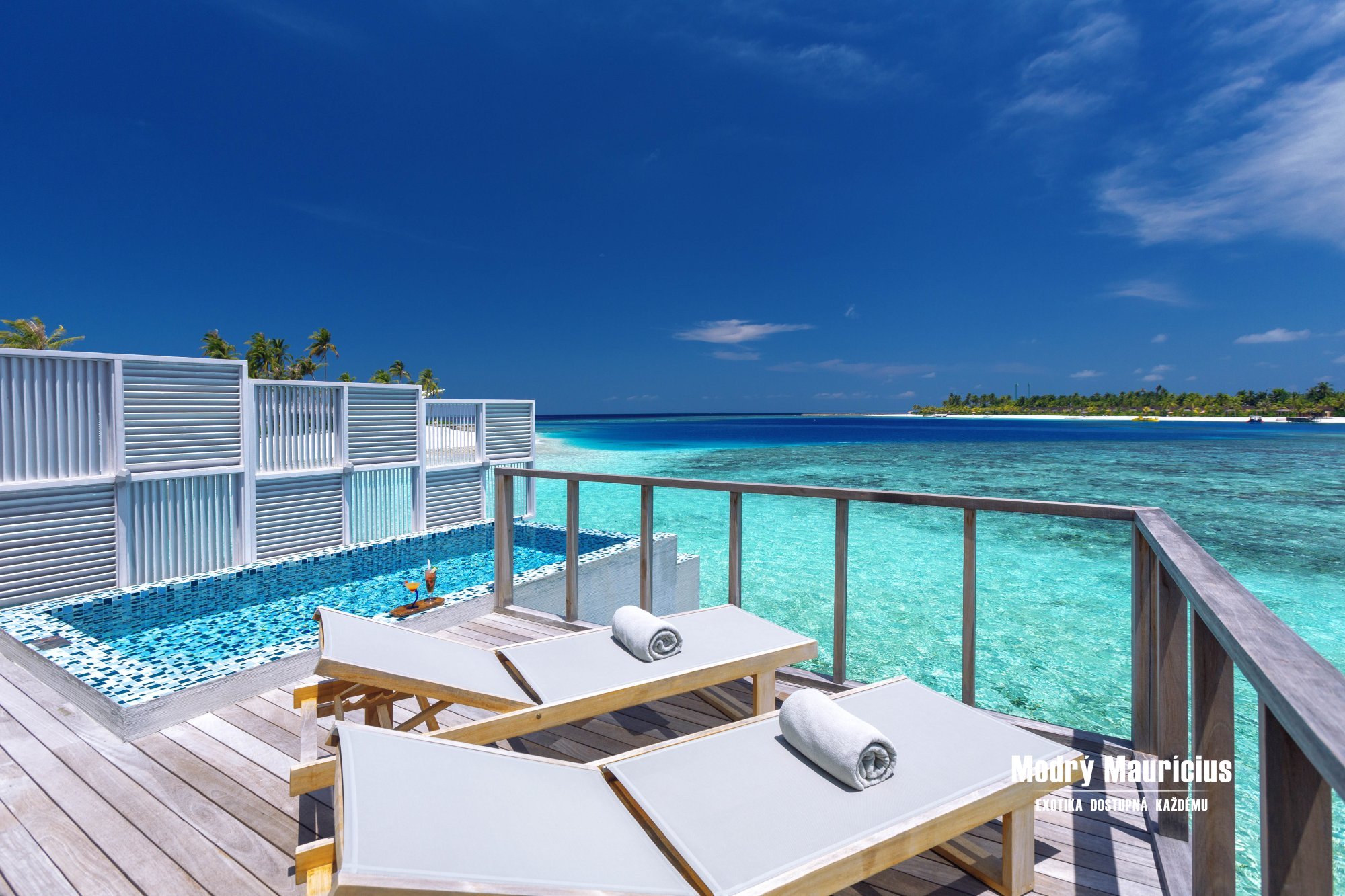 Vily nad vodní hladinou s bazénem (88 m2) přinášejí jedinečný pocit svobody a luxusu přímo uprostřed laguny. Každé ráno zde můžete začít s výhledem na nekonečnou modř oceánu a večer zakončit při západu slunce z vlastní soukromé terasy. Stačí pár kroků a ocitnete se v průzračné vodě laguny, která láká k osvěžujícímu koupání i šnorchlování. Dokonalou atmosféru tropického útočiště podtrhuje vlastní soukromý bazén o velikosti 8 m2, kde si můžete vychutnat chvíle klidu s výhledem na oceán.