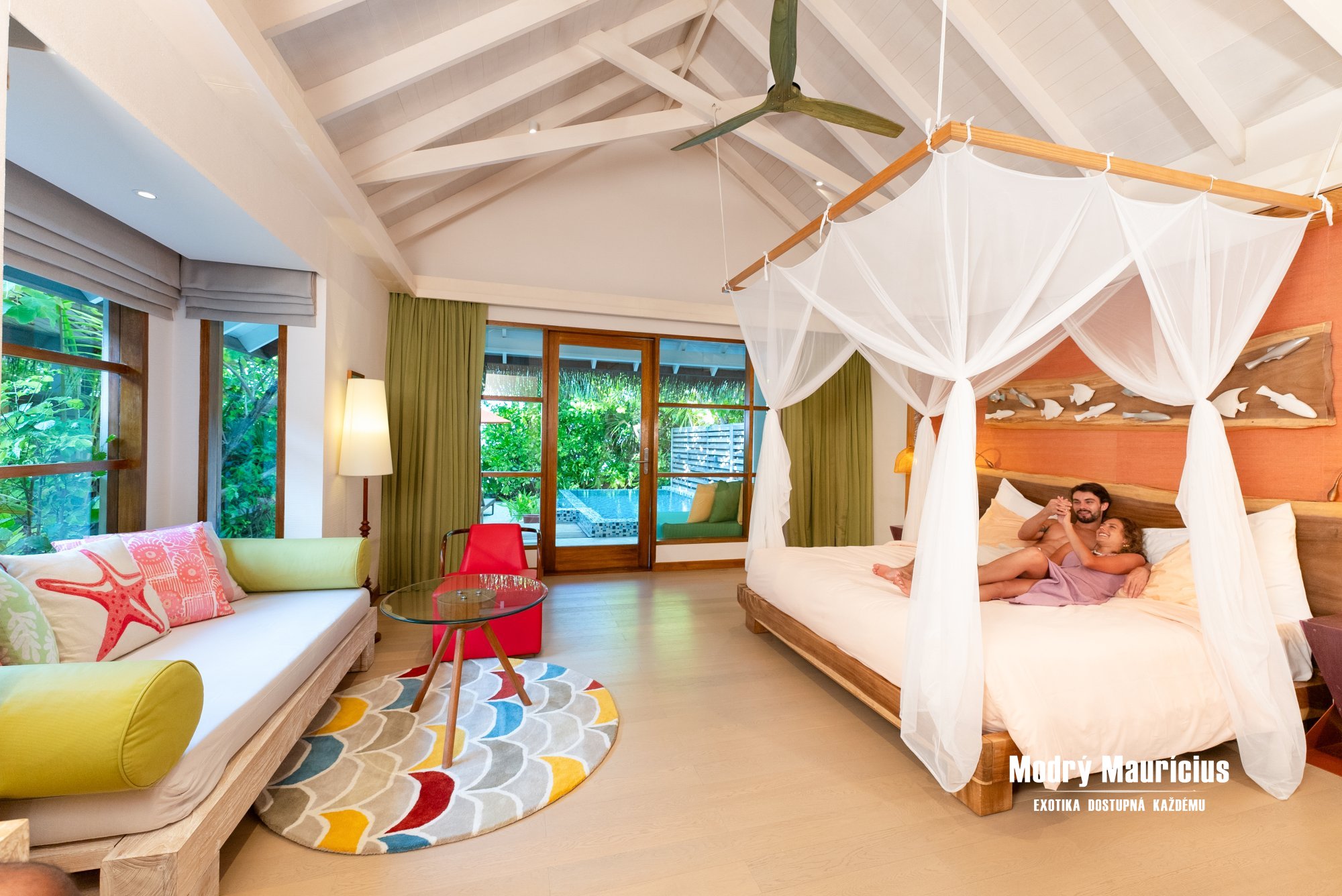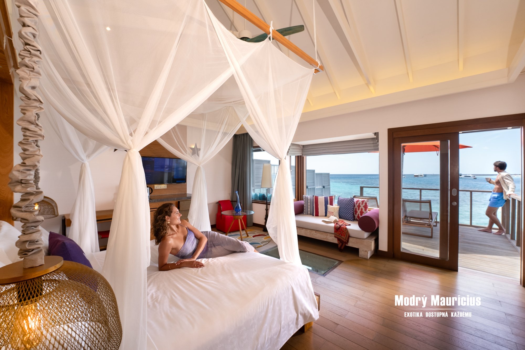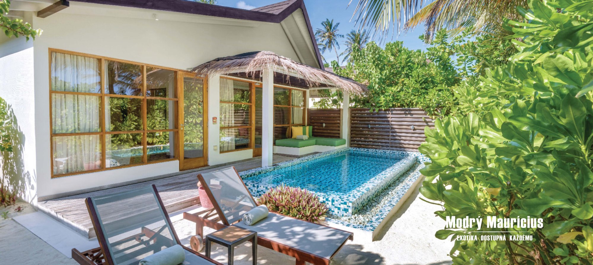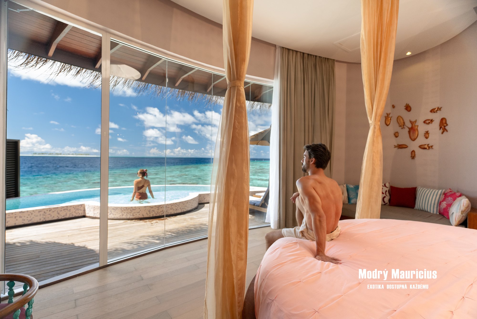 Vily nad vodní hladinou s bazénem (88 m2) přinášejí jedinečný pocit svobody a luxusu přímo uprostřed laguny. Každé ráno zde můžete začít s výhledem na nekonečnou modř oceánu a večer zakončit při západu slunce z vlastní soukromé terasy. Stačí pár kroků a ocitnete se v průzračné vodě laguny, která láká k osvěžujícímu koupání i šnorchlování. Dokonalou atmosféru tropického útočiště podtrhuje vlastní soukromý bazén o velikosti 8 m2, kde si můžete vychutnat chvíle klidu s výhledem na oceán.