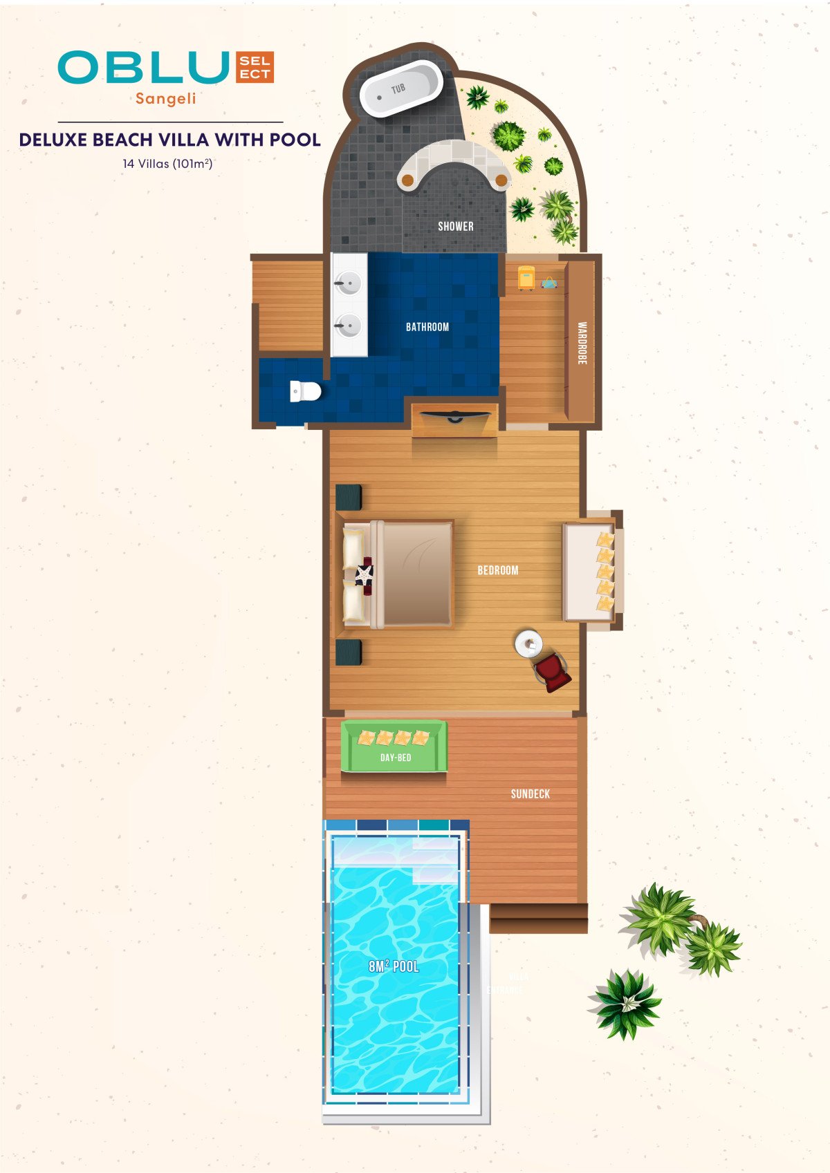 Plážové vily s bazénem (101 m2) představují ideální útočiště pro hosty, kteří si chtějí dopřát maximální komfort a soukromí jen pár kroků od oceánu...