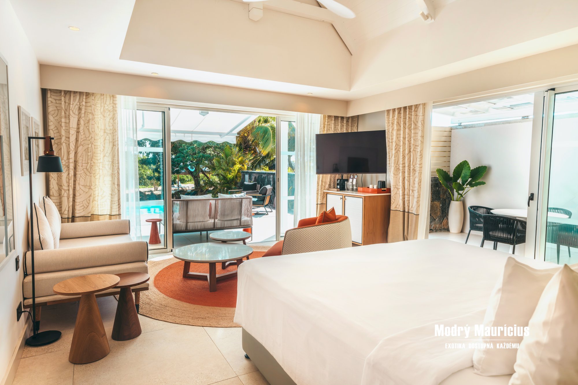 Romantický pokoj s plochou 85 m² je umístěný přímo na pláži, Indický oceán tak budete mít jako na dlani. Dáváte-li však přednost klidnějším vodám, potěší vás soukromý bazén, který se nachází pouhých pár kroků od vaší ložnice. Kochejte se během celého pobytu pohledem na mangrovníky a užijte si naprosté soukromí s obsluhou komorníka. Maximální kapacita jsou 2 dospělí a 1 teenager (minimální věk 12 let).