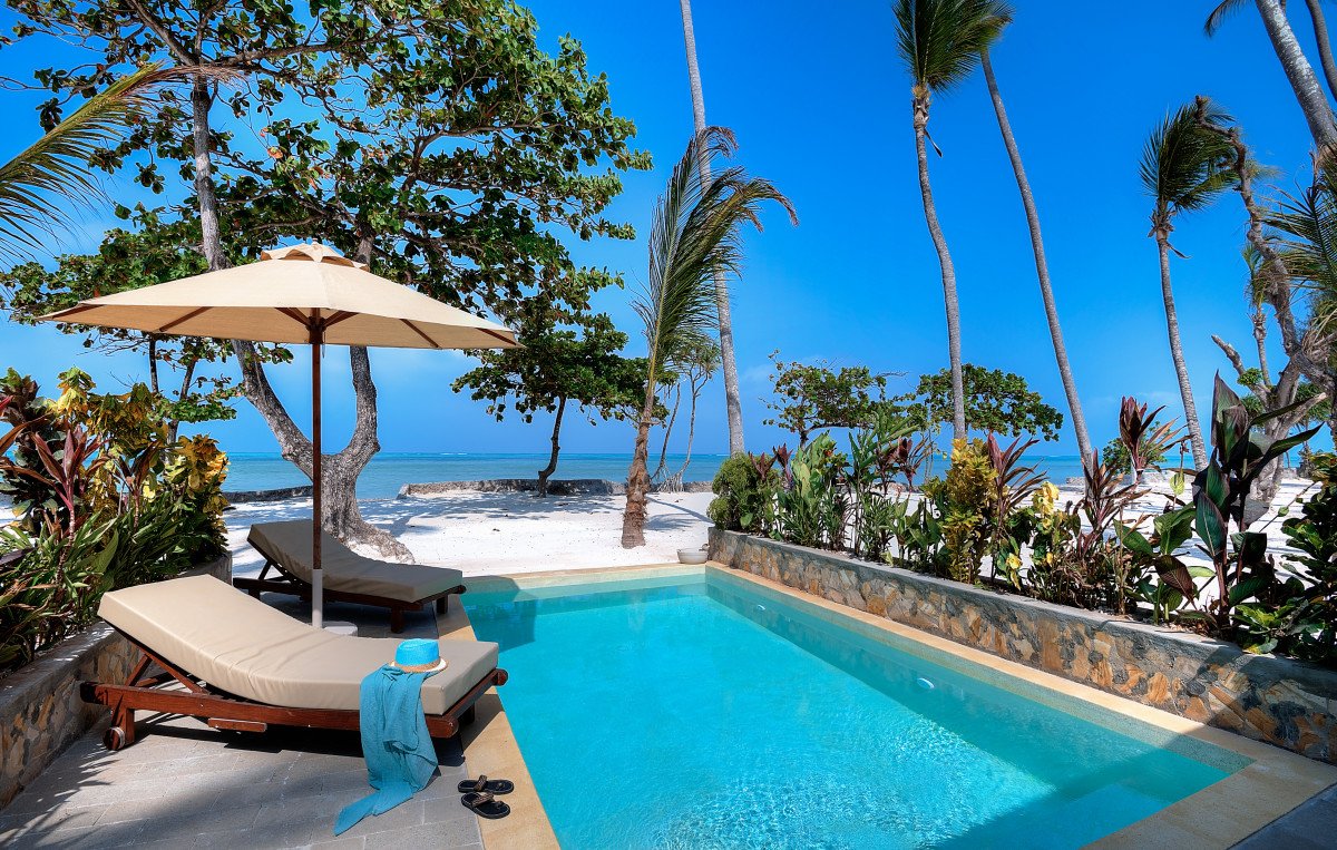 Vily a suity s bazénem zahrnují: 4 plážové vily v první linii u moře se soukromým bazénem (25 m²) a 2 suity v první linii u moře se soukromým bazénem (32 m²). Vybavení a služby: