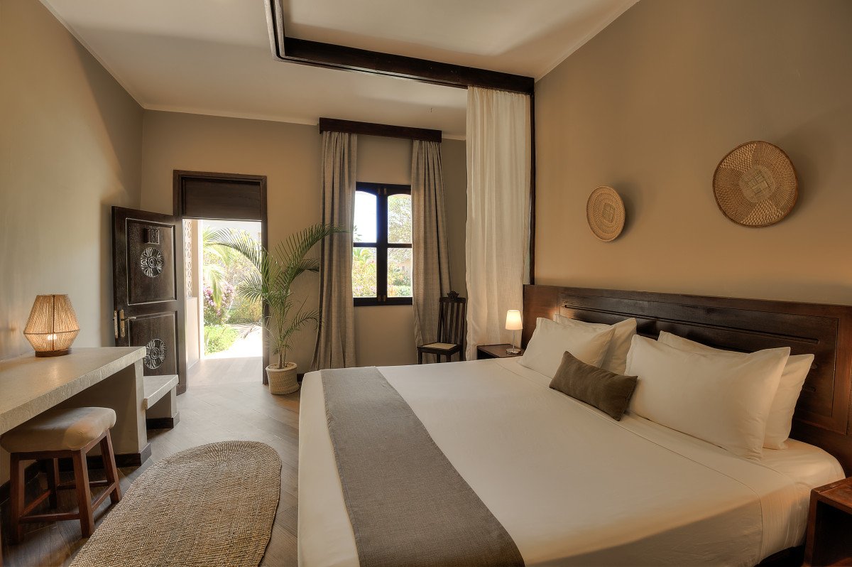 21 zahradních pokojů Garden se nachází na nejvyšší úrovni resortu obklopené nádhernými zahradami. Všechny pokoje jsou elegantně zařízené v tradičním africkém stylu.
